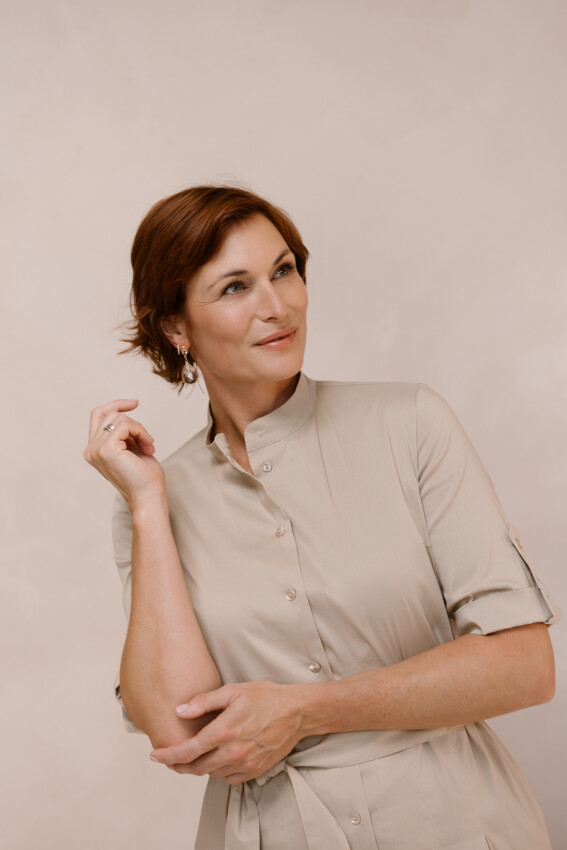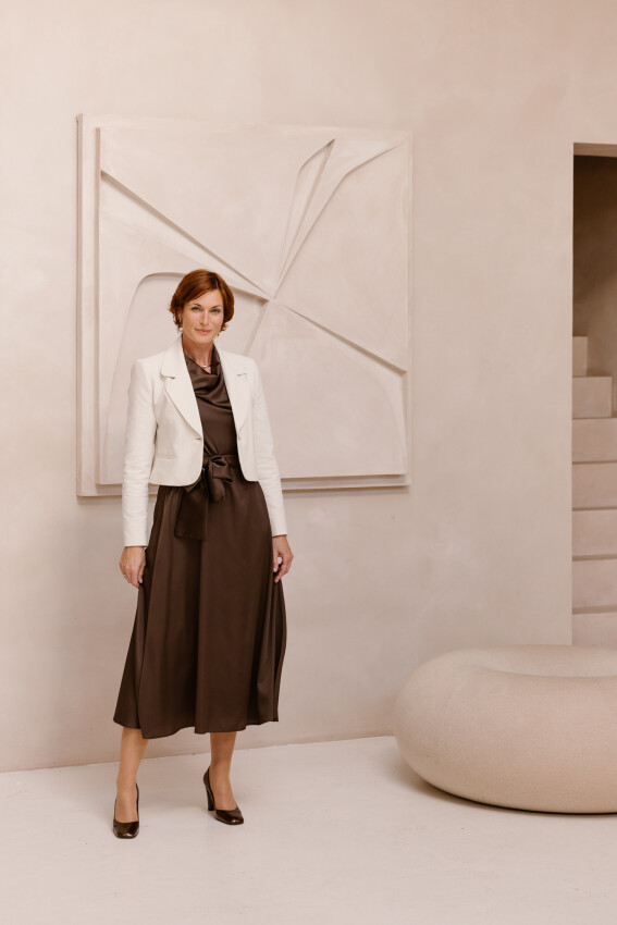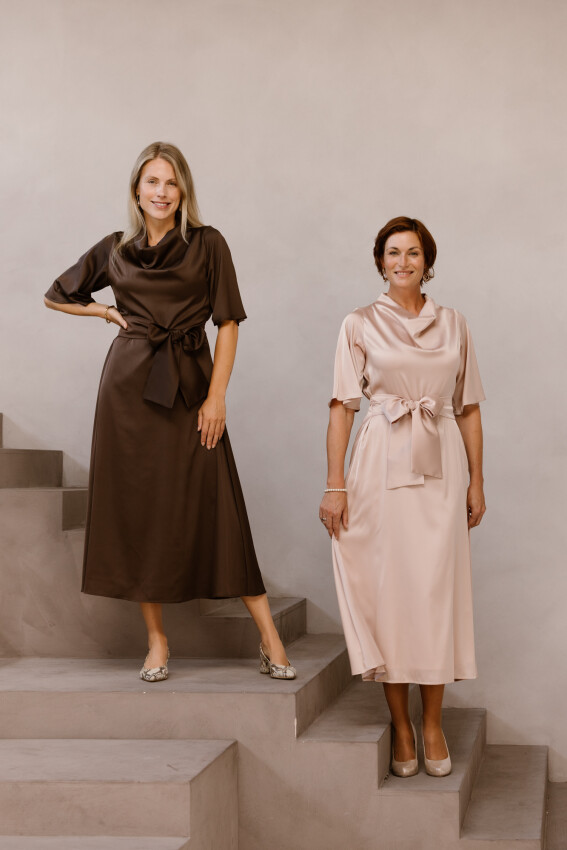 LILYTIME | Blazer Vera | Offwhite/goud | 279,95 & LILYTIME | Jurk Wilke | Donkerbruin | 239,95