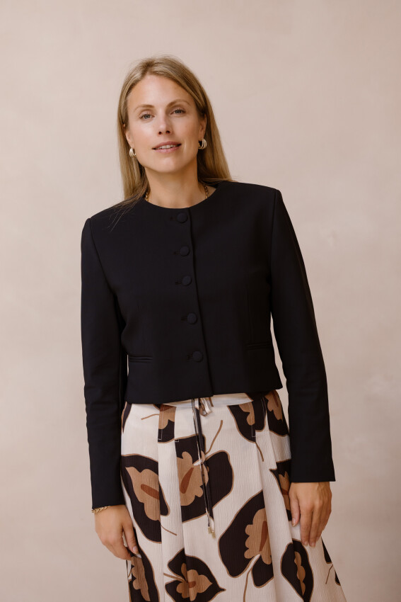 LILYTIME | Blazer Karlijn | Zwart | 259,95 & LILYTIME | Rok Tine | Zwart dessin | 179,95