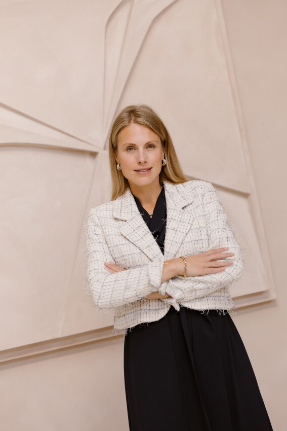 LILYTIME | Blazer Karlijn | Zand | 259,95 & LILYTIME | Rok Tilda | Zand | 149,95 | Blouse Nella | Wit | 129,95